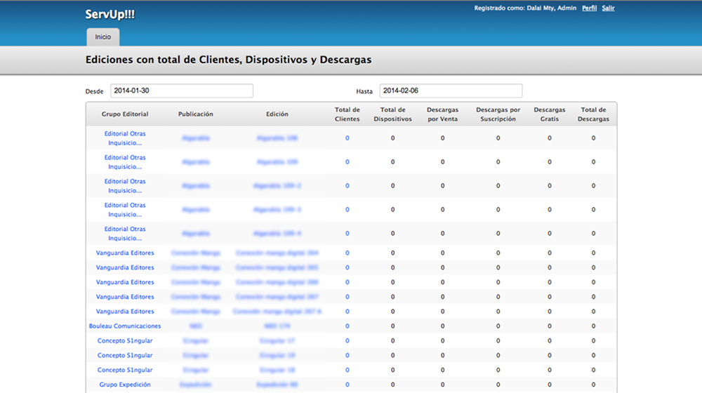 la validación de los usuarios autorizados para descargar publicaciones digitales a través de